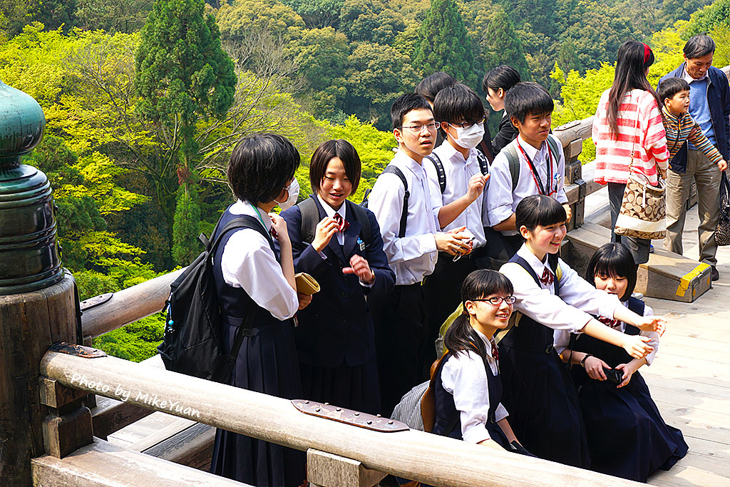 ▲也有許多觀光客與畢業旅行的學生在清水舞台上與身後美麗的景緻照相留念