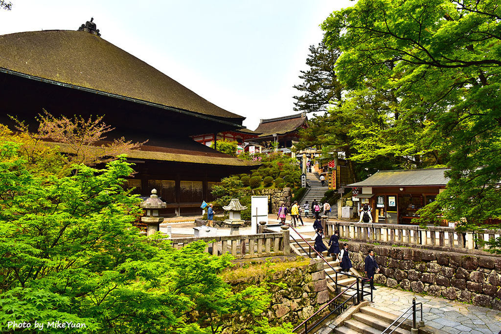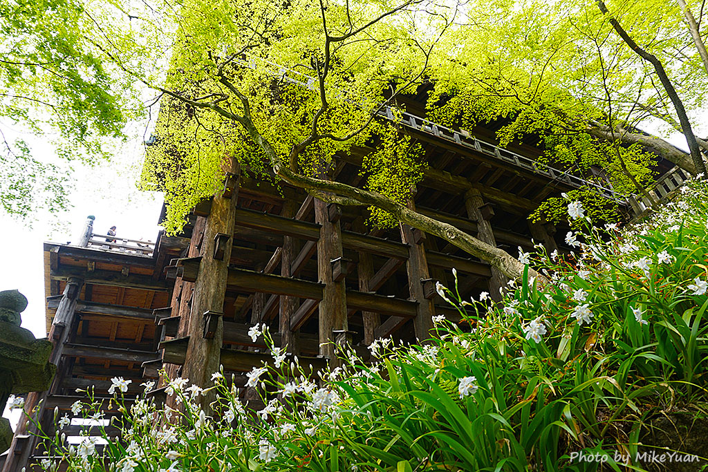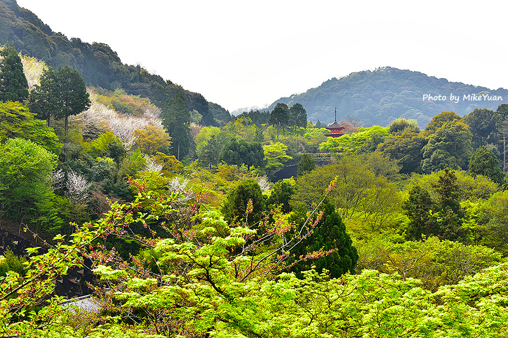 ▲清水舞台後方的景緻,雖然櫻花已凋落,但配上翠綠的嫩葉也別有一番韻味
