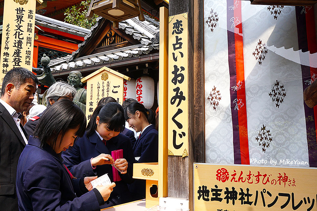 ▲地主神社深受許多女生喜愛,前來的女生參拜幾乎都會抽籤看看今年戀愛運勢如何呢!