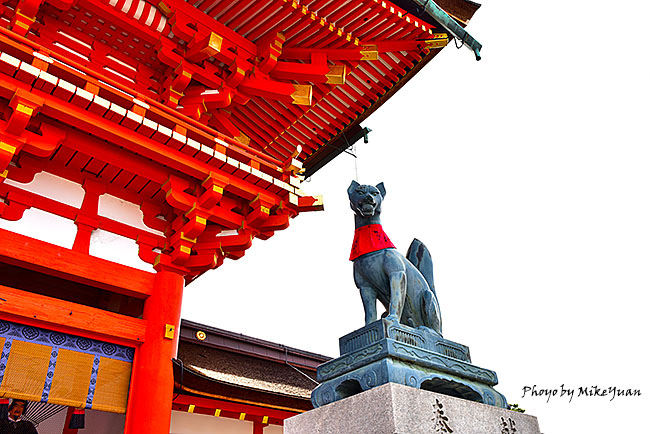 大家不難發現伏見稻荷大社從入口處開始就充滿許多狐狸像,讓人直接聯想到伏見稻荷就是祭拜狐狸神的神社,