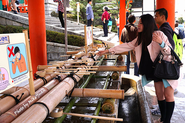 ▲旁邊都有教學要如何正確的在參拜前洗手,洗完記得要將水瓢物歸原處!!