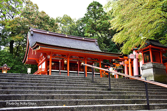 走出千本鳥居步道之後就是延著原路走回到神社本殿,從另一個角度看過去也是有不一樣的美感呢