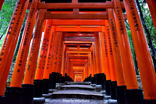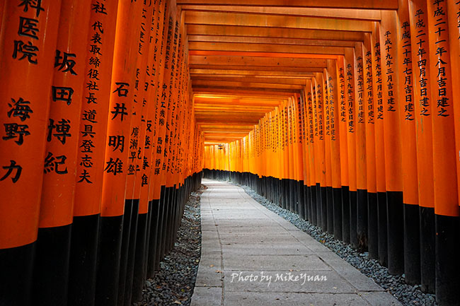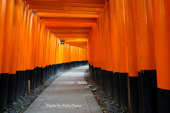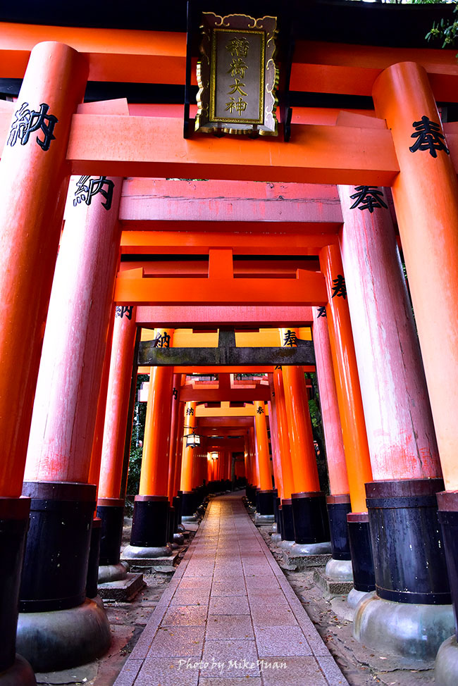 走在千本鳥居中真的有種要從人間界通往神明處所的感覺,無比夢幻的鳥居延綿不斷的一直延伸至道路的盡頭,